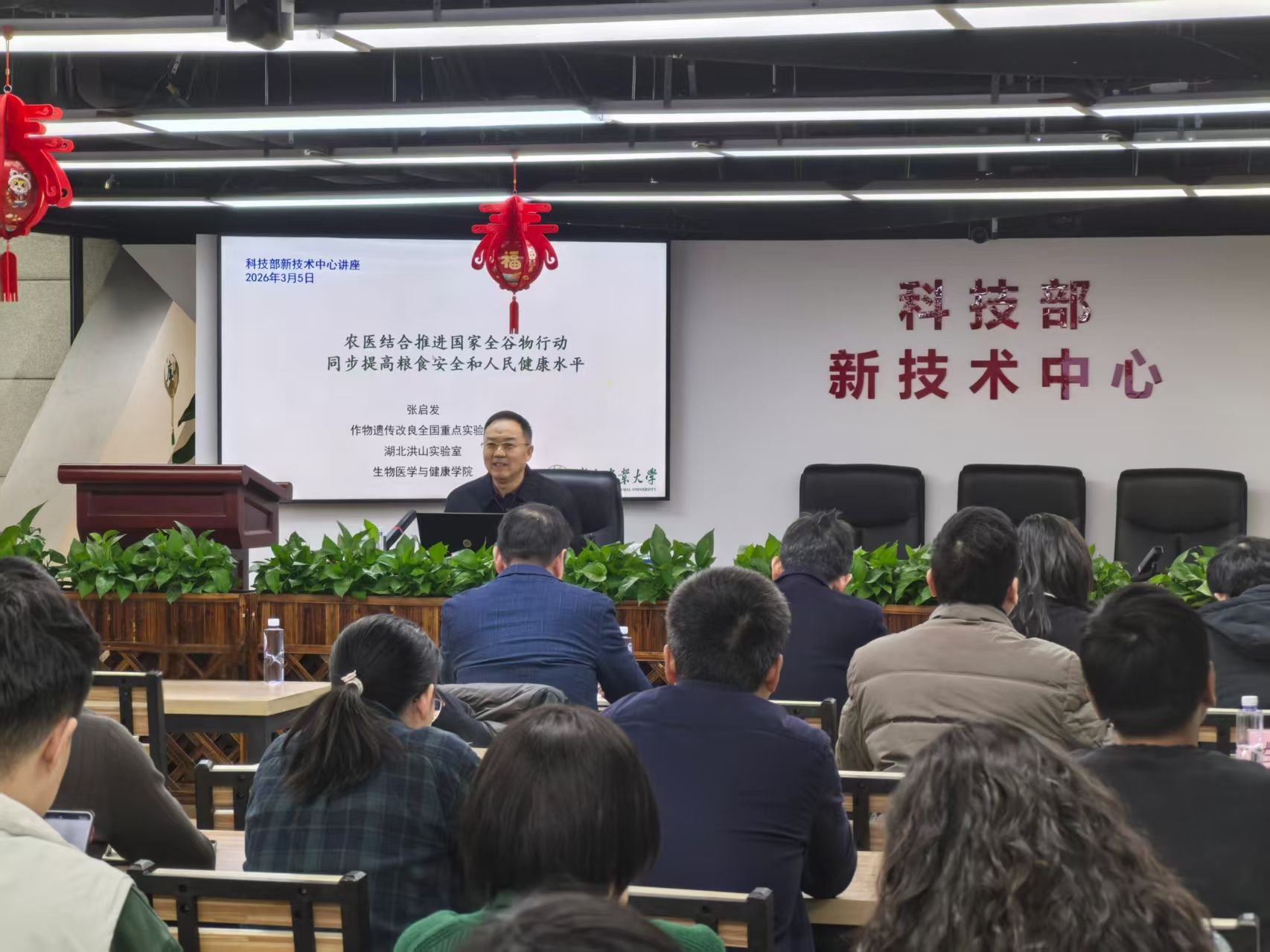 2月10日,中粮营养健康研究院首席专家、粮食储运中心主任丁子元一行来校调研交流,华中农业大学校长、洪山实验室常务副主任严建兵热情接待了调研组一行。