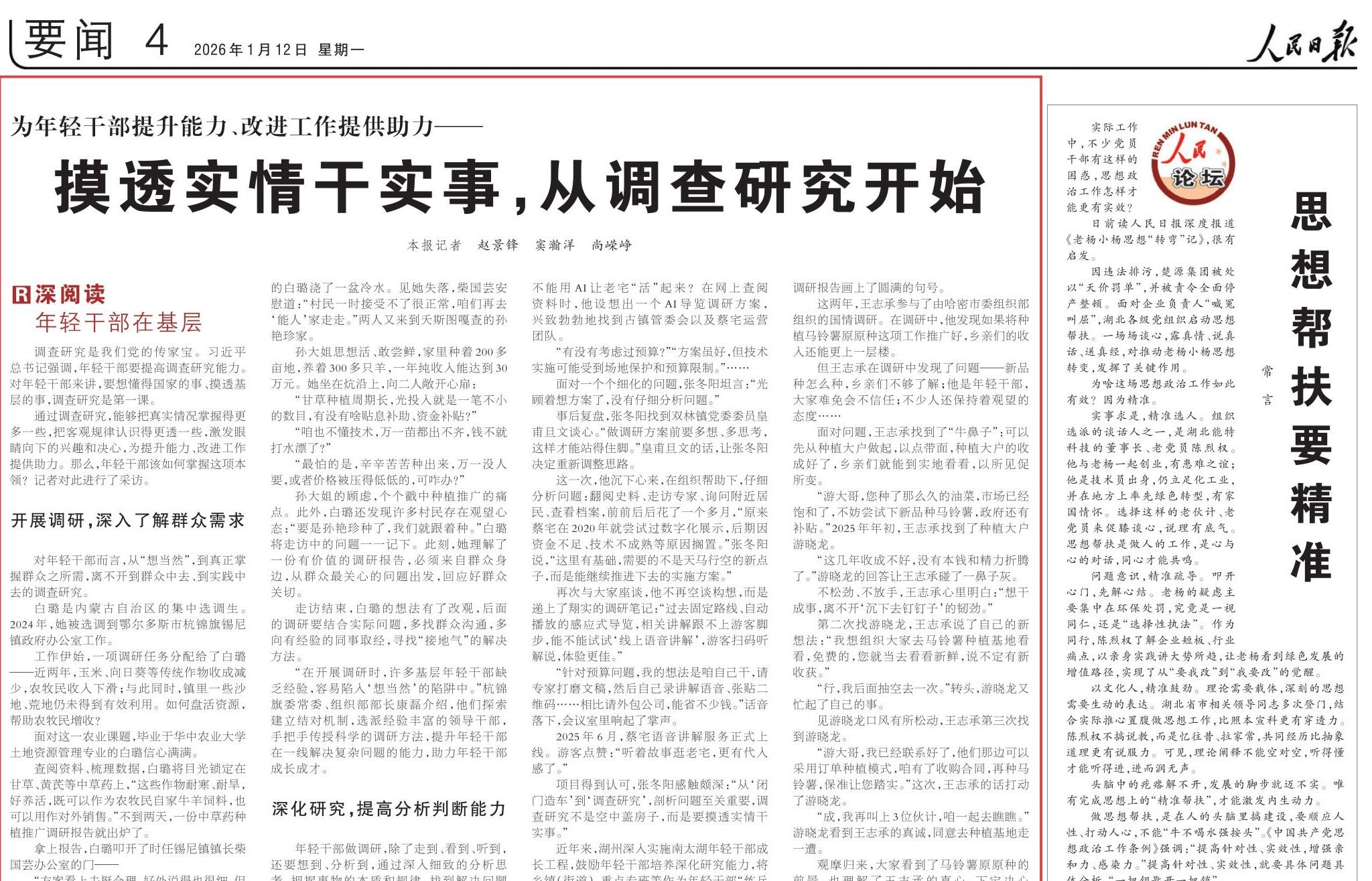 2026年1月6日的《中国青年报》头版,以《一个持续十五年的约定》为题,讲述了华中农业大学张瑜服务队15年来接力替英雄同学尽孝的故事。